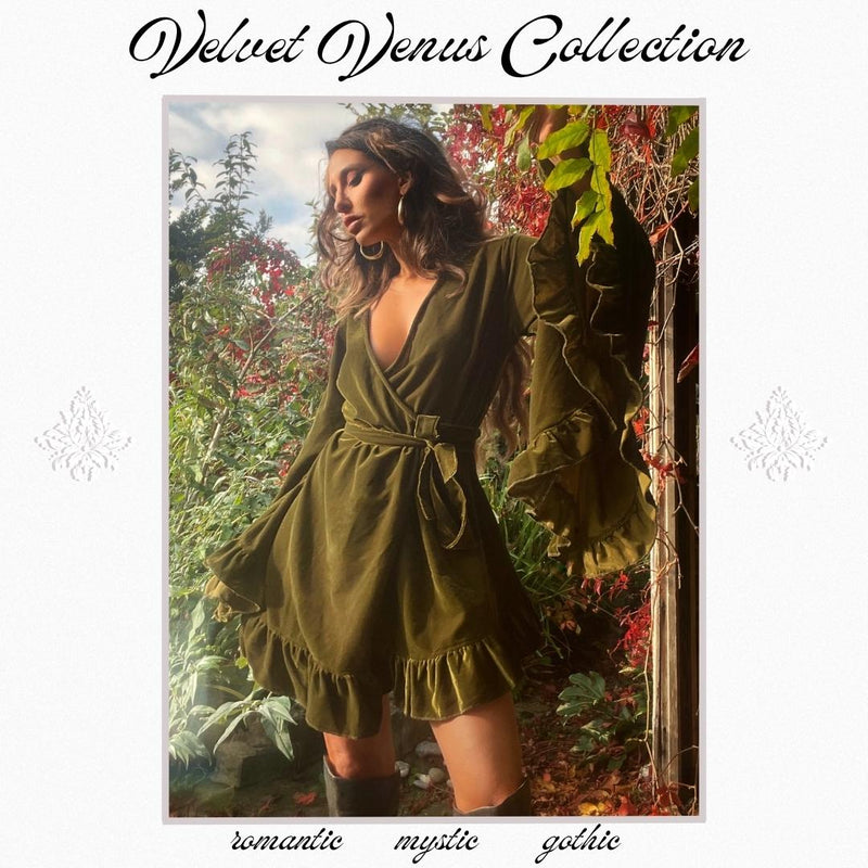 Venus Folklore Floral Wrap Top in Witch-Hazel Gold
