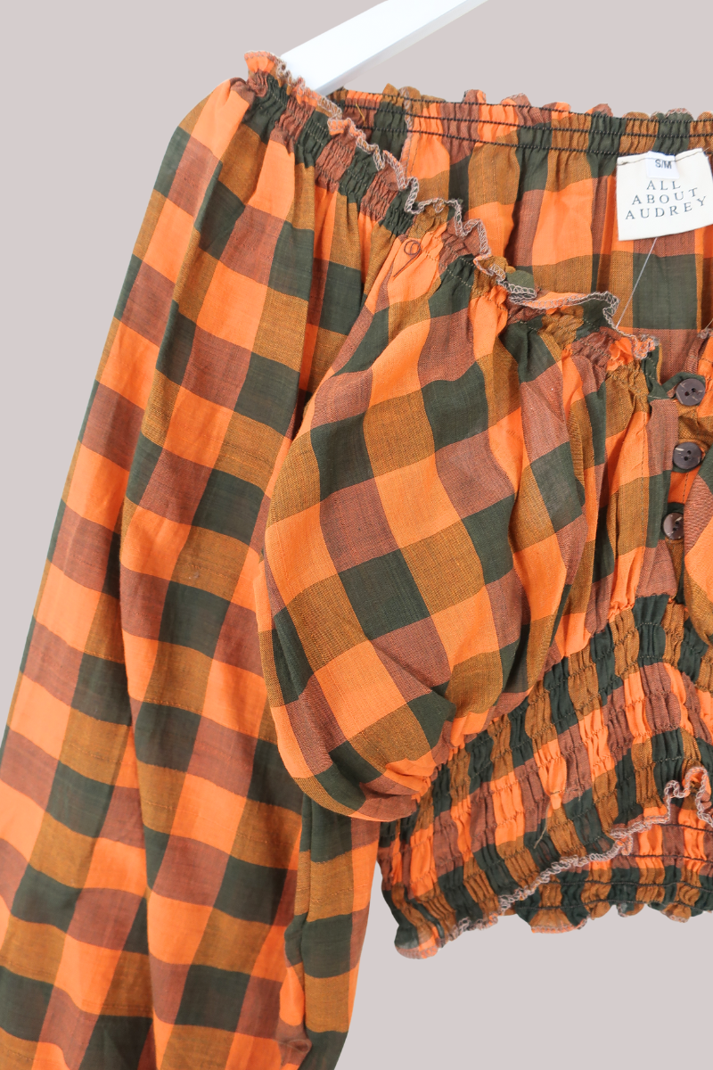 Libra Vintage Cotton Top - Turmeric & Sage Check - Size S/M