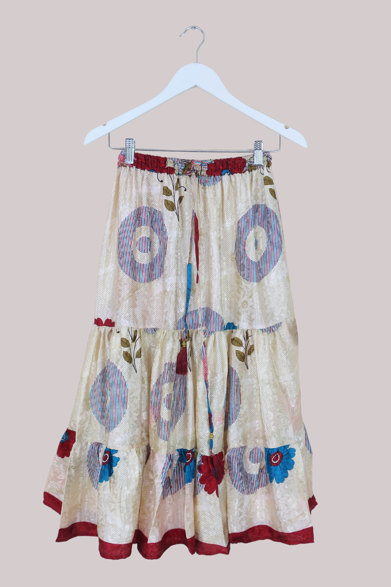 Rosie Midi Skirt in Champagne & Scarlet - Free Size