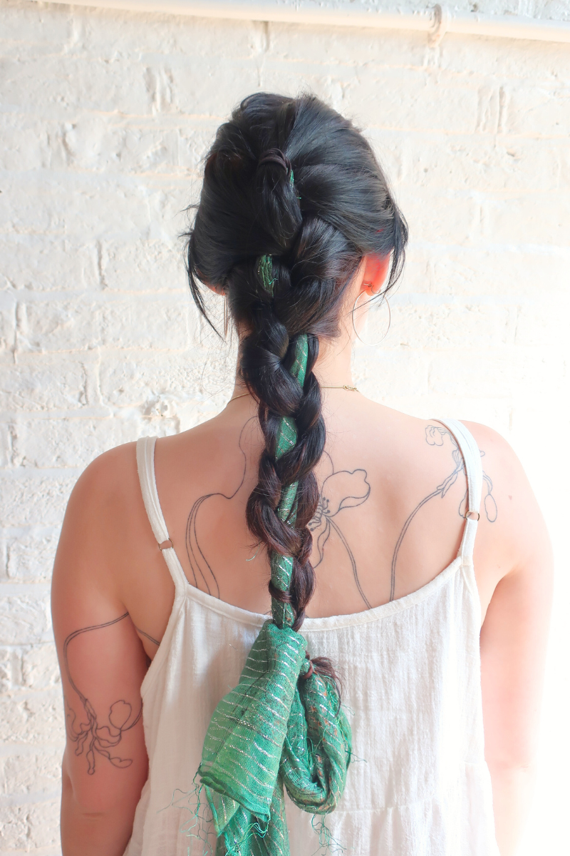 A versatile summer staple. This delicately sheer vintage square scarf can be wore in a limitless number of ways. Get creative by braiding it through your hair, tying it into a halter, or simply just wear it round your neck - the choice is yours!