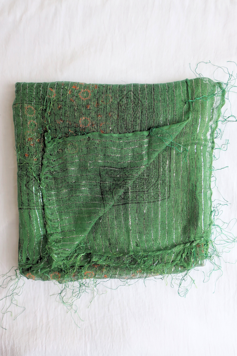 Fabric: 100% delicate vintage cotton gauze - due to the vintage nature of the scarf, there can be imperfections such as small pull holes or warping to the stitching. This does not detract from the overall quality & appearance of the item though.